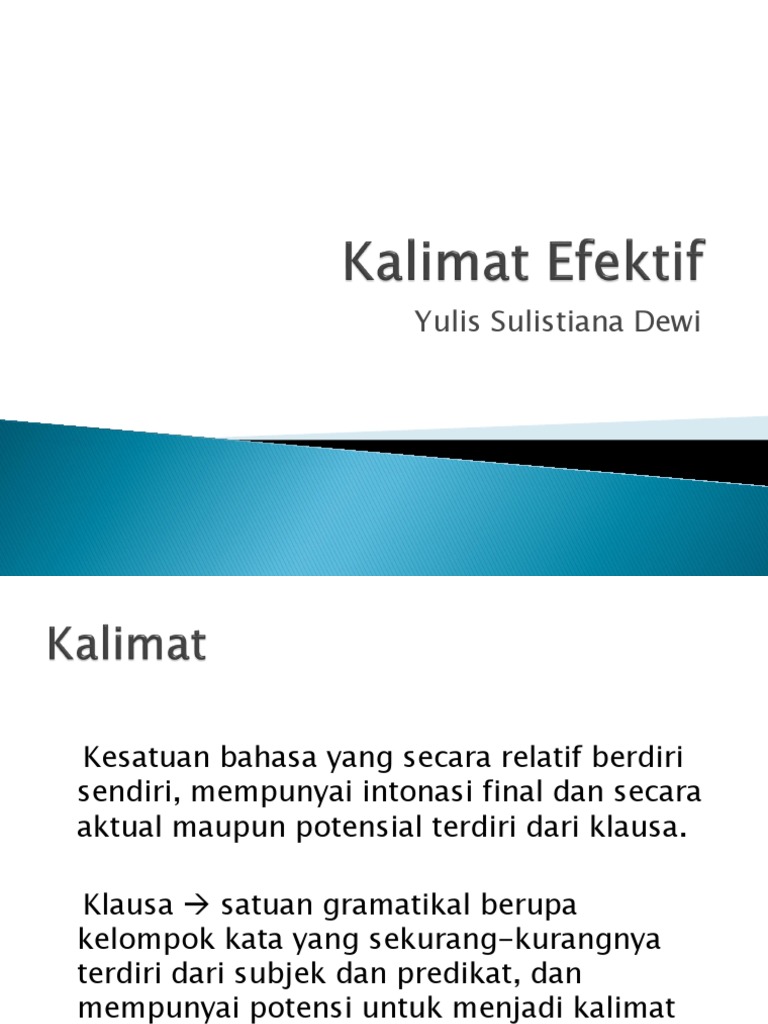 Kalimat Efektif & penyebab kalimt tidak efektif.pptx from imgv2-2-f.scribdassets.com Suatu kalimat dikatakan tidak efektif bila kalimat tersebut mengandung unsur pleonastis, penggunaan imbuhan yang tidak tepat, ataupun kalimat yang menggantung, dan masih. Kalimat efektif adalah kalimat yang disusun dengan baik sehingga dapat dipahami oleh pembaca.penggunaan kalimat efektif dalam bahasa indonesia harus. Hal ini berbeda dengan pengertian kalimat tidak efektif yang tidak hemat kata atau menggunakan dua bentuk dengan makna sama. Apabila anda masih mengingat pelajaran yang diberikan saat berada di masa smp atau sma, tentunya tidak asing dengan pemberian materi tentang kalimat efektif. Demikian pembahasan tentang kalimat efektif dan tidak efektif: Perbedaan antara kalimat efektif dengan kalimat tidak efektif dapat dilihat dari bentuk struktur kalimatnya, urutan penjelasannya apabila sudah dalam bentuk paragraf, memiliki informasi atau ide pokok, dan penggunaan katanya. Kalimat efektif merupakan susunan kata yang mengikuti kaidah kebahasaan secara baik dan benar. Hanya saja, apakah kalimat yang anda buat tersebut sudah termasuk dalam kalimat efektif.